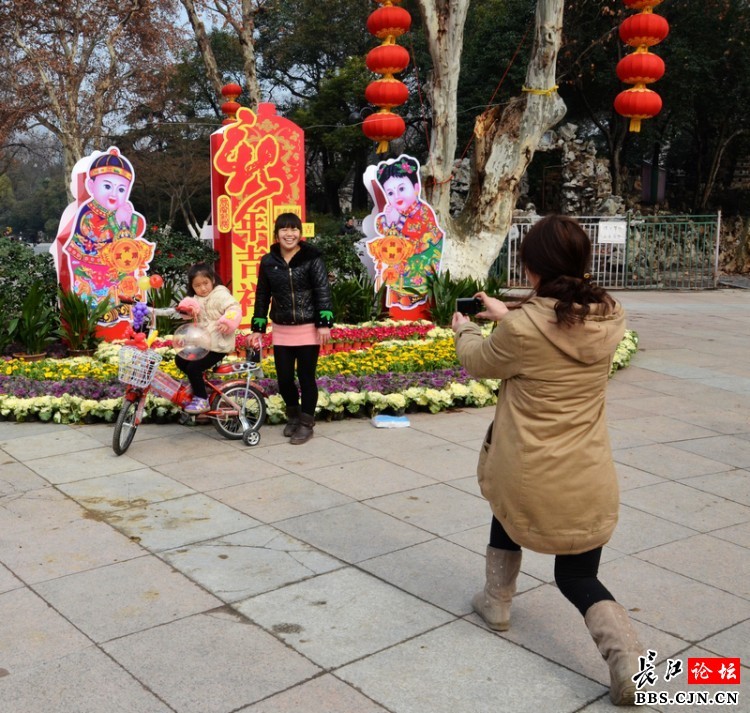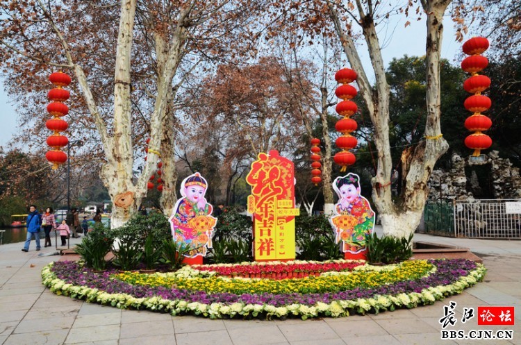 2月1日上午,中山公园大门入园处,”新年吉祥“扎景和大红灯,透着浓浓的年味,格外引人注目。